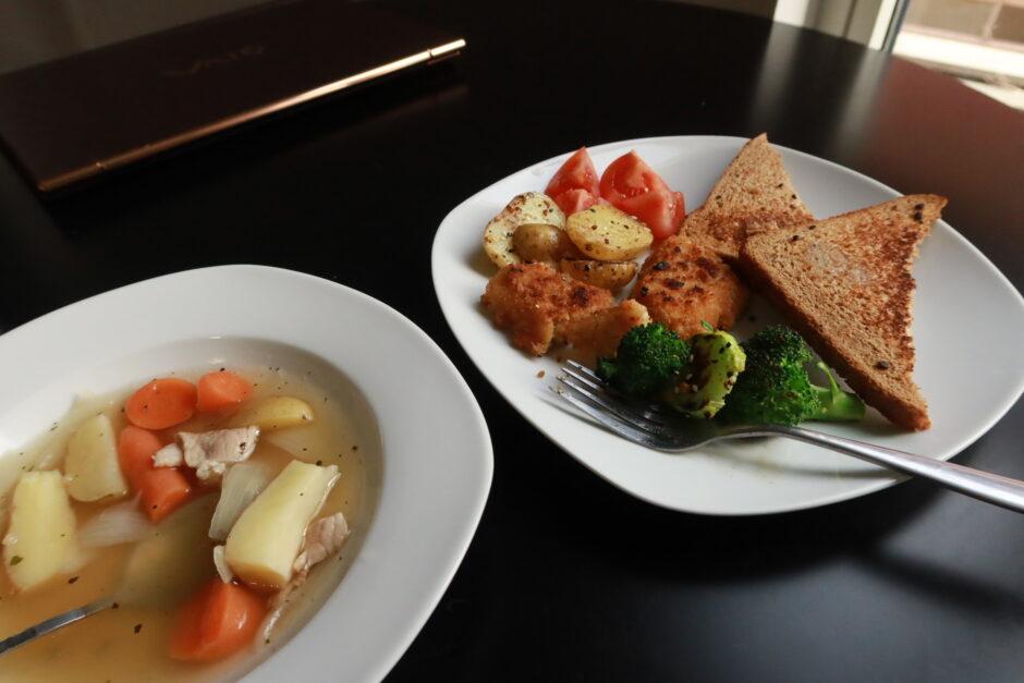 トースターなし、オーブンなし、炊飯器なし、調理器具は鍋とフライパンひとつずつと電子レンジだけ、スーパーの米がまずすぎ、、この状況で作れるものを必死に考え、お米の質があまり関係ないリゾットや鍋ひとつで栄養が取れるスープ中心の食事が定番になりました。