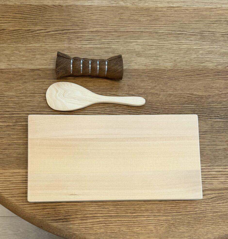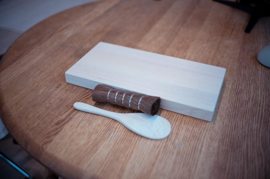 そんなある日、使っていたまな板が黒くなり(多分管理が悪く…)、しゃもじも先が割れたので(プラを使っていた)、「あ、そうだ友野風呂さんに行ってみよう」と思ったのでした。